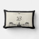 Adicione algum encanto de Nova Orleães a sua decoração com este travesseiro lombar em preto e branco caracterizando sua inicial limitada por um símbolo extravagante da flor de lis na parte superior e um esboço da arquitetura de Nova Orleães, incluindo a catedral de St Louis, na parte inferior. NOTA: As cores não podem parecer tão escuras como fazem no ecrã de computador impresso uma vez no tecido.