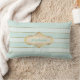 Este travesseiro lombar feminino, chic, apresenta um fundo em forma de aqua, com faixas brancas transparentes bordadas em ouro falso. Você pode mudar facilmente o nome no quadro ouro do ornamentado antes do check-out. Este travesseiro oferece suporte a na moda-back com um toque de ouro.