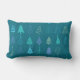 A modern festive throw pillow featuring a calming teal backdrop adorned with minimalist Christmas tree illustrations. The varied tree shapes and soft tonal palette create a playful yet elegant pattern, adding a subtle seasonal charm that complements both contemporary and cosy interiors. A thoughtful gift or home decorative add on.