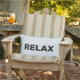 Este cojín suave y con diseño minimalista lleva impresa la palabra “Relax” como recordatorio diario de que tu paz es prioridad.