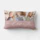 O design de travesseiro decorativo lombar personalizado moderno e na moda apresenta uma colagem de fotos de três (3) fotos favoritas com um design de tipografia simples e minimamente branca de "Amor" que inclui detalhes florescentes e cardíacos. As cores cor-de-rosa-rosa poeirento e branca podem ser modificadas.