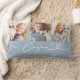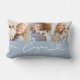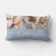 O design de travesseiro decorativo lombar personalizado moderno e na moda apresenta uma colagem de fotos de três (3) fotos favoritas com um design de tipografia simples e minimamente branca de "Amor" que inclui detalhes florescentes e cardíacos. As cores claras azul e branca do raio-chave podem ser modificadas.