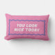 Simples e divertido, este travesseiro lombar, cor-de-rosa duplo e roxo, apresenta um retângulo ondulado e dois lados diferentes, mas coordenadores, com lembretes de texto amigáveis para espalhar positividade em sua vida e em sua casa. Você pode alterar o texto de sua própria mensagem personalizada também!