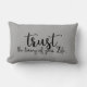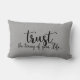 Cinza de fundo com uma citação em preto "Confie no momento da sua vida" no Travesseiro lombar. Opções de tamanho e tecido do travesseiro. Procure outros produtos pela Simple Living.