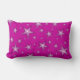 Design moderno com estrelas rosa e brancas "brilhantes" num fundo cor-de-rosa e a sua escolha de texto no verso. Travesseiro decorativo com um design personalizável para você personalizar com seu próprio texto, imagens e ideias. Esta é uma imagem de arte digital criada usando fotografias originais e técnicas digitais e impressa em tecido, ela não brilha ou contém faíscas reais.