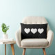 Este design é três corações brancos em um fundo preto. No outro lado do travesseiro há três corações pretos em um fundo branco.