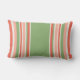 Este travesseiro lombar externo apresenta faixas verticais de várias larguras em espargos verdes, claros e escuros e espargos espargos. Um padrão de verão ideal para pátio, baralho ou varanda.