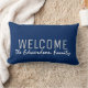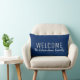 Os azuis marinhos modernos dão boas-vindas ao nome do monograma da família, travesseiro feito sob encomenda.