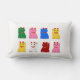 Coussin retulaire avec des maneki neko de différentes couleurs sur fond blanc