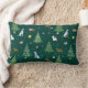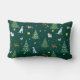 Um travesseiro bonito com pratas brincalhonas, dalmatianos e westies cercados por flocos de neve, abeto decorado e presentes festivos. A design, colocada contra um fundo verde, traz uma atmosfera de Natal alegre a qualquer lugar.
