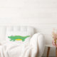 O travesseiro apresenta uma ilustração original de um jacaré de desenho verde e amarelo, com impressão amarelo sólido no verso.