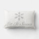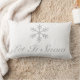 Um travesseiro lombar do feriado que caracteriza um floco de neve e o texto "deixou-o nevar" nas cinzas em um fundo branco