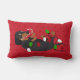 Desencadeie do travesseiro decorativo bonito do Natal do Dachshund do elogio do feriado o Dachshund bonito Tangled acima em uma corda de luzes de Natal com um bastão de doces em sua boca. Divertimento, decoração cómico do feriado perfeita para amantes do cão.