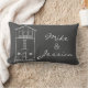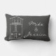 Cinzas minúsculas do desenho do quadro da casa e travesseiro lombar retangular personalizado branco.  Personalize-o com seu nomes ou texto personalizado. Esta imagem é de minha tinta original no desenho da mão de mylar de uma casa de campo rústica pequena com encantamento de detalhes arquitectónicos e a pedra pequena benches cada lado da porta. Eu alterei a imagem digital para olhar como um desenho de giz branco em uma obscuridade - quadro cinzento.