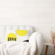 Ilustração abstrata com formas geométricas (círculos e listras) formam decoração em cores amarela e preta sobre fundo branco.