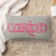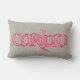 Um travesseiro lombar divertido com a palavra galesa 'cariada' num guião celta, preenchido com um bonito padrão vermelho de Gingham, traçado em vermelho num fundo colorido (burlap) hesitante. Presente perfeito para aquele que você ama!