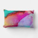 Almofada lombar com um design abstrato artístico sofisticado. Pintura em aquarela com as cores se misturando e se entrelaçando, criando um belo padrão marmorizado fluido.