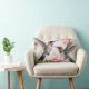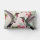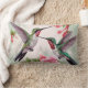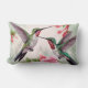 Dois beija-flores em voo com flores bonito de hibisco rosa e flores de trompete em um travesseiro lombar para todas as suas ideias de decoração primavera.