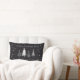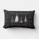 Elegant Modern Christmas Stars Pillow with Family Name designed with white Christmas trees with gold colored stars on a black background. The front text reads: The Stars Are Brightly Shining along with your Family Name. The reverse text reads: Peace On Earth with your Family Name. To personalize simply insert your name into our easy template, replacing the sample. Makes a great Christmas gift for someone, or to decorate your home for the holidays. Note: Inserting your Family Name into the template with automatically repeat on the reverse.