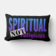 Este engraçado travesseiro negro "Espiritual, Não Religioso" é um imperativo para os seus amigos da nova era! Apresentando fontes ousadas e aflitos em um gradiente azul e roxo impressionante, este travesseiro faz uma declaração espiritual divertida. A palavra "não" sobressai numa letra de estêncil, revertida de uma caixa branca, colocada diagonalmente, criando um efeito ousado, semelhante a um carimbo. Um presente perfeito para adicionar um toque de humor e personalidade a qualquer espaço. Além disso, você pode personalizá-lo para um toque especial extra!
