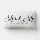 Este travesseiro decorativo elegante para recém-casados com sua data de casamento apresenta um fundo branco sólido com texto preto. Os títulos "Sra. & Sr." são impressos em uma fonte grande, em estilo caligráfico, através do centro. A data em que eles foram casados é impressa abaixo. Você pode personalizar o travesseiro com sua própria data de casamento ou texto personalizado.