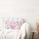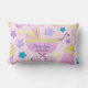Travesseiro doce de berçário para uma menina de cor rosa macio e pastel com estrelas, novela, mamadeiras e botas. A frente do travesseiro apresenta uma área com nome e data de nascimento que está pronta para personalizar com suas informações. Fornece apoio ao excelente para mães que alimentam a natureza.
