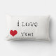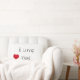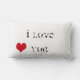 Um travesseiro branco com coração vermelho e as palavras "Eu te amo".
