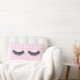 Par de pestanas pretas fechadas em padrões de gingham cor-de-rosa e branco.