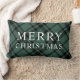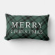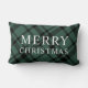 Este design de travesseiro lombar festivo apresenta um elegante texto personalizado "Feliz Natal" e um caçador clássico / verde-pinheiro e xadrez de tartan escocês preto na diagonal com padrões de fundo. O plano de fundo verde pode ser personalizado para qualquer outra cor que você preferir.