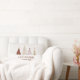 Elegante design festivo apresenta uma exibição elegante de árvores de Natal nevadas em vermelho, ouro e rosa em um creme neutro de neve levemente listrado fundo bege. A parte inferior é coberta de neve branca com "Feliz Navidad" em tipografia clássica elegante. Adicione um nome personalizado ou uma linha de texto personalizado em um script vermelho correspondente ao modelo simples de usar. O design repete atrás.