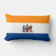Pillow with the flag of Albany, New York. An orange, white, and blue flag with the city emblem in the center