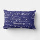 Um travesseiro decorativo festivo a trazer para fora nos feriados, ou no ano redondo! "Bênçãos" no branco em um fundo azul festivo, festooned com flocos de neve brancos.