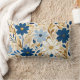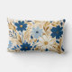 Almofada Lombar Flores azuis e brancas com folhas de ouro