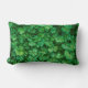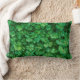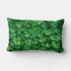 Um travesseiro lombar com um campo de folhas de trevo verde. Estas lindas plantas têm gotas de água por toda a parte, dando-lhes uma nova aparência de primavera.