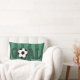 Design de futebol em quadro preto em tons de cinza sobre fundo listrado verde