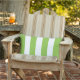 O design travesseiro exterior simples apresenta um padrão de extensas faixas verticais de cabana brancas com fundo verde limão. Design clássico com qualquer estilo de decoração. A cor de fundo pode ser modificada.