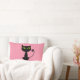 Desenhos animados pretos engraçados do gatinho com fundo cor-de-rosa.