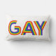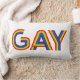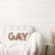 Este trabalho de arte apresenta a palavra Gay em uma fonte colorida do arco-íris.