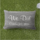 Este travesseiro ao ar livre tem um fundo ilustrado de granito de cinza escura e diz, "Sr. e Sra." com o novo sobrenome casado na frente, e "Nós fizemos" com a data de casamento do casal recém-casado na parte de trás, fazer um travesseiro de sotaque excelente para a mesa do casamento ao ar livre, e o baralho ou pátio dos recém-casados.