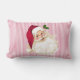 Vintage Victorian Santa Claus Feriado travesseiro decorativo de Natal com Papais noeis de morango e fundo listrado branco.