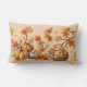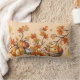 Um travesseiro lombar decorativo com o tema Colheita, nos deuses, vermelhos, laranjas e amarelos de outono.
