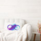 Símbolo infinito com uma bela pena pintada em cores roxas e azuis brilhantes sobre fundo branco.