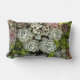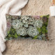 travesseiro decorativo lombar de 21" x 13" com uma imagem de uma pintura aquarela de realismo extremo de um adorável conjunto de plantas suculentas de jardim. Verde atrás. Veja toda a coleção de Travesseiros Flores e Plantas na seção HOME.