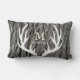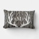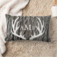 Cinza de fundo de latido com galhotas brancas e sua escolha de texto monograma na frente e atrás! Este travesseiro lombar faz um excelente presente ou sotaque para aquela casa acolhedora escondida num lindo cenário florestal!