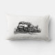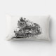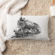 As locomotivas velhas do trem em um fundo branco torrado chug através deste travesseiro decorativo a sua sofá ou cadeira. Dois trens diferentes.