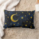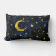 Almofada Lombar Lua ouro e estrelas no mármore azul escuro