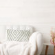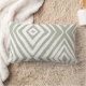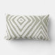 Estes travesseiros decorativos lombares de 13" x 21" apresentam um design de diamante moderno na sombra verde-cinza popular, também conhecida como "Outubro Mist" sobre um fundo branco.