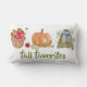 Prepare sua casa com este charmoso travesseiro de outono com a frase "Queda de Favoritos" cercada por trabalho de arte de água sazonal. Um cesto de maçãs com uma abelha zunhando acima, uma abóbora com folhas de outono, e um suéter verde aconchegante com um cachecol são acentuados pela folhagem colorida de outono, capturando tudo o que você ama sobre a estação. Perfeito por adicionar um toque quente de outono a salas de estar, entradas ou porches, este travesseiro decorativo faz um sotaque sazonal excelente ou presente para amantes do outono.