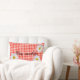 flores margaridas brancas e texto "ficar enquanto" no padrão de tecido colchão vermelho e branco