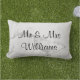 Este travesseiro ao ar livre tem um fundo de mármore branco ilustrado e diz, "Sr. e Sra." com o novo sobrenome casado na frente, e "Nós fizemos" com a data de casamento do casal recém-casado no verso, fazer um travesseiro de sotaque excelente para uma mesa de casamento ao ar livre, e o pátio dos recém-casados, ou convés.